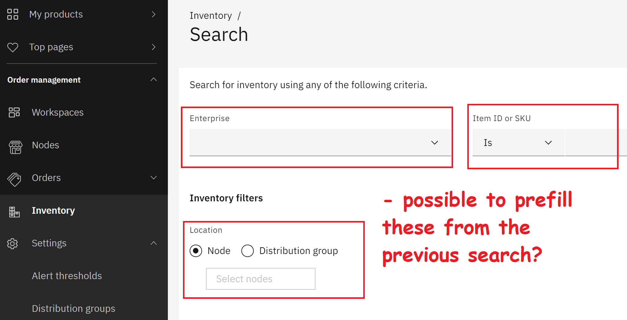 As a fulfillment manager, I often search for my key items under the BUC Inventory tab. It would be wonderful if the previously entered selections (Enterprise, SKU, Nodes) were persisted and I would not need to re-enter them every single time.