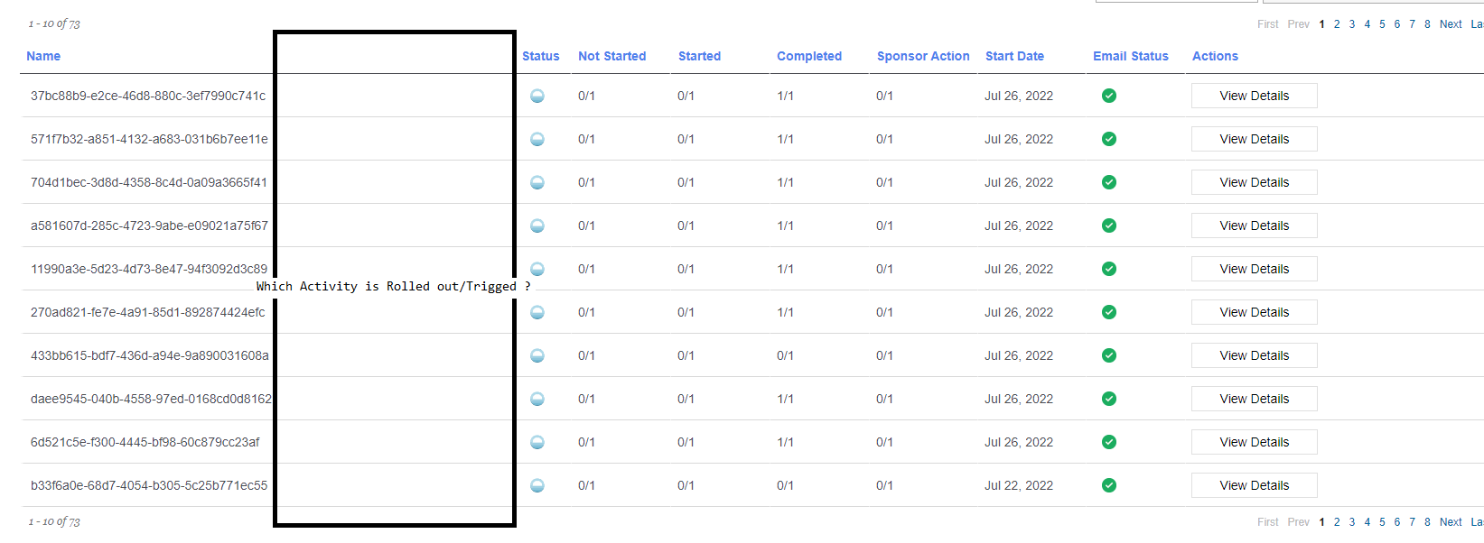 With this idea we are hoping to have Rollout ID to check which activity is rolled out so we would know exactly which definition to check for troubleshooting/monitoring purpose.